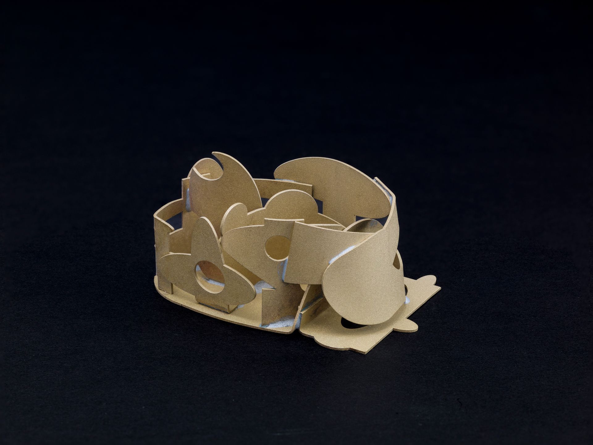 I saw several phenomena all at once. These were sculptures in which I could see the inside and the outside at the same time. I had a linear plan of the construction by looking sown at the top and I could see an edited version of the sculpture by looking through the 'windows' cut into the curved planes. It was like an MRI scan of an idea.