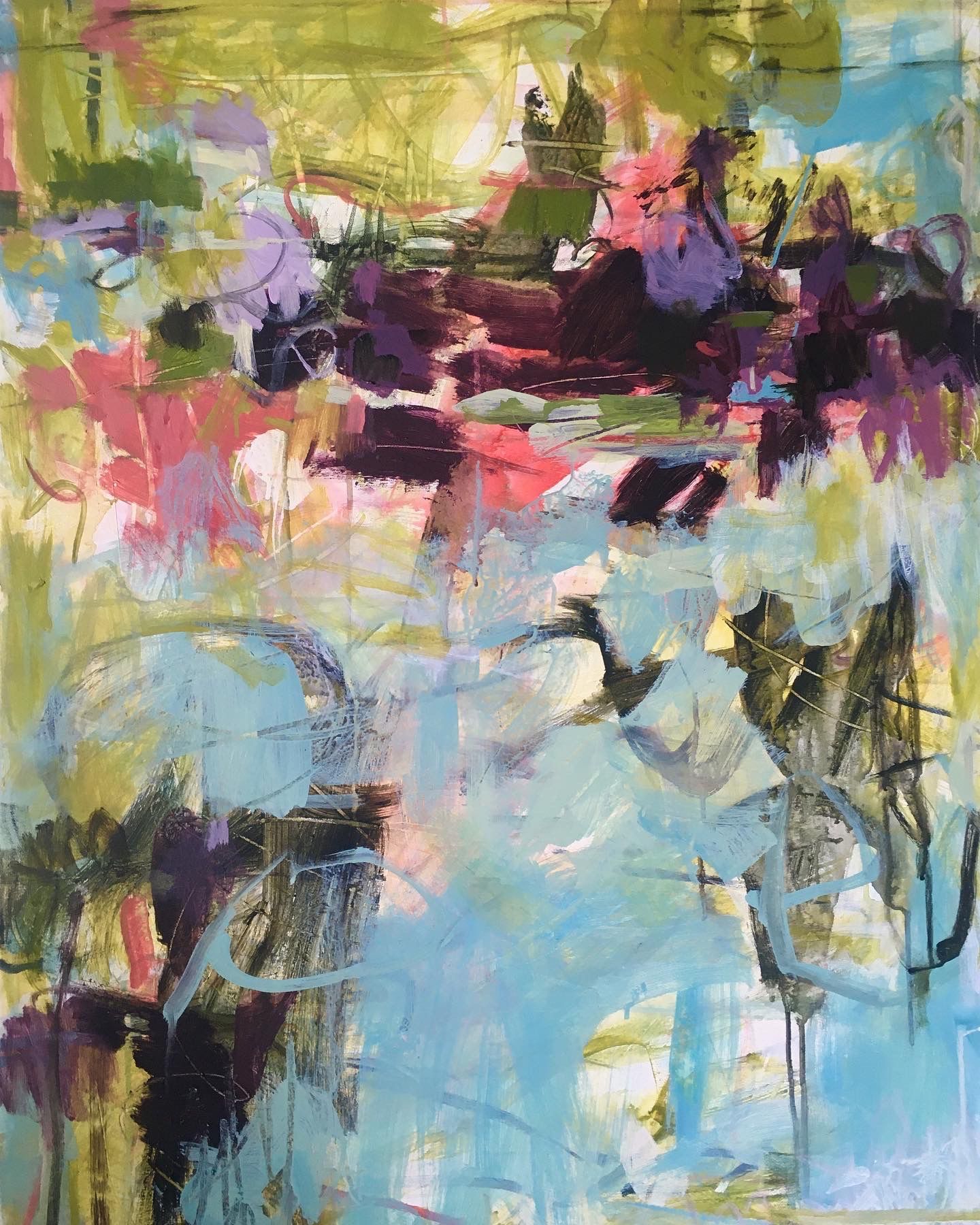 Janet’s paintings are ‘non objective’. The starting point comes from her energy - manifested in marks and areas of paint put down on canvas both spontaneously and quickly. She then responds to what is on the canvas - it is a dance between spontaneous elements and structural aspects of the painting. Her aims are to keep things open and flowing - to allow the painting to take its own direction. It is a challenging and exciting way to paint. It may sound contradictory but the mental discipline of keeping an open mind is what creates space for the spontaneity. Janet’s paintings are a deeply personal expression and analogous to life.