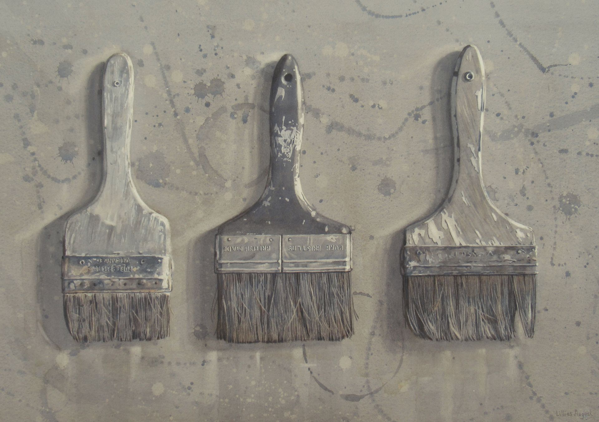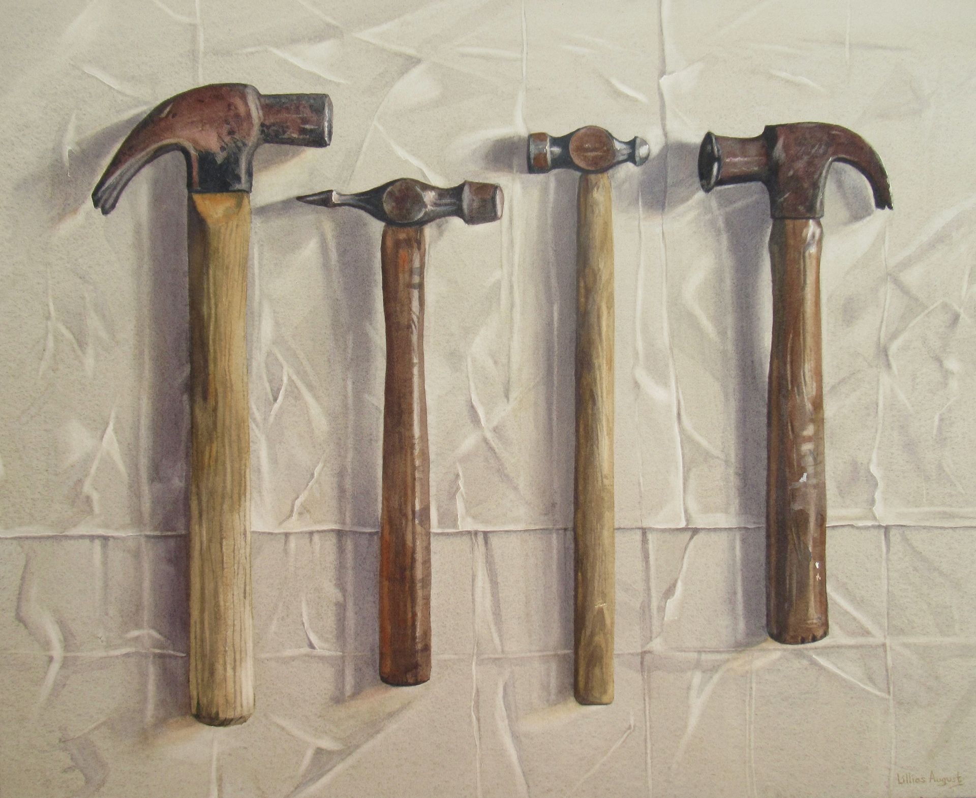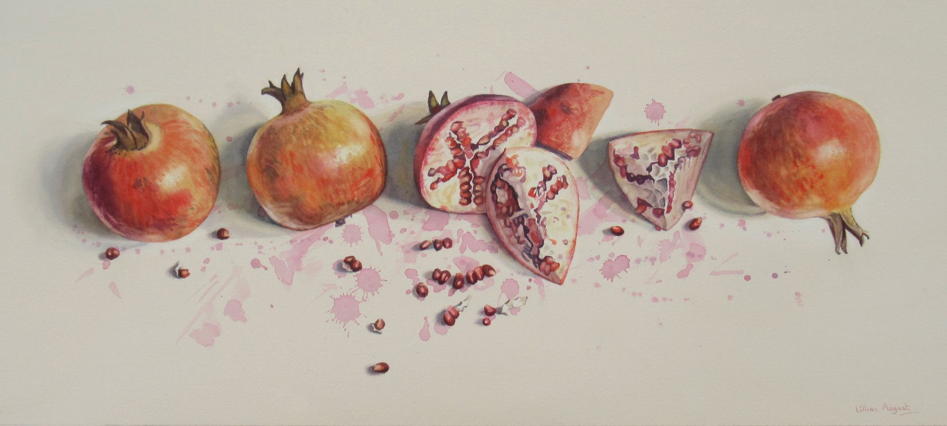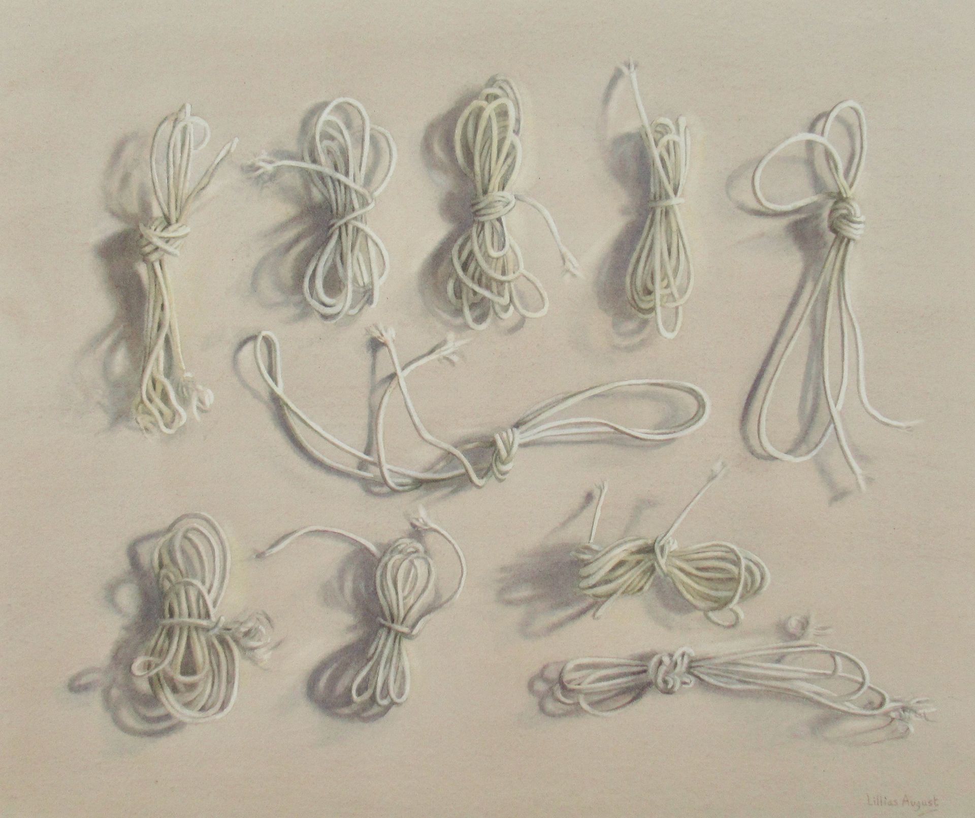Lillias August is a contemporary “Pop-Still Life” artist working with precision to detail in pencil and watercolour. Her captivating recent works form kitsch and intimate studies of ordinary things presented in an extraordinary way. Through her acute observational skills she explores a visual tale which goes beyond realism giving life and purpose to the superfluous. Lillias’s paintings are daringly ingenious as they beckon the viewer to examine a composition where something powerful is conveyed; lipsticks in a line, keys, mobile phones or knives can carry a sinister message or simply arrest the observer and take them out of their comfort zone.