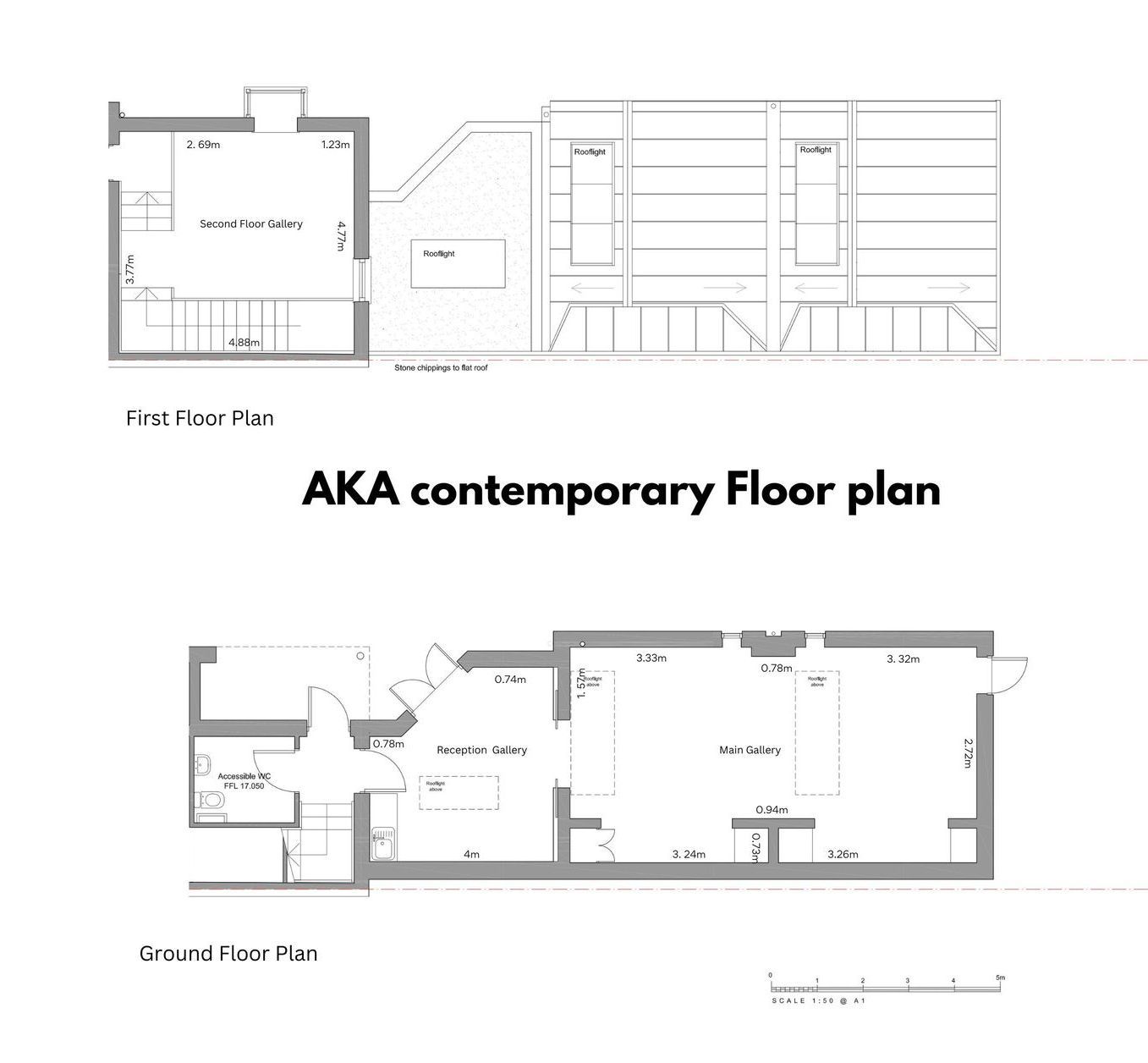 The Gallery's total floor area is approximately 68 square metres with an average floor to ceiling height of 2.30 metres. The downstairs gallery space has been designed to flood with Northern light. In total there are over 88 square metres of wall space for exhibiting. The overhead spotlights are LED daylights designed for maximum colour rendition. Hire one or both spaces depending on your exhibition needs.