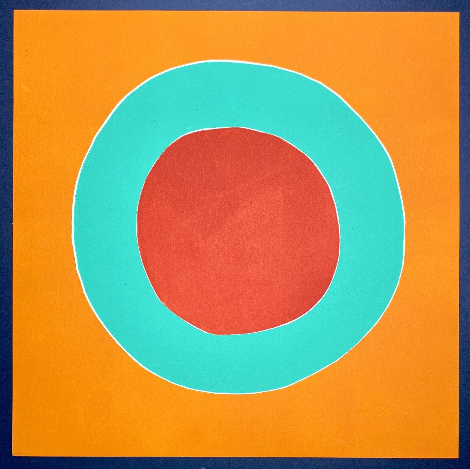 Frost's Orchard Tambourine C series consisted of 25 colour woodcuts in various colourways, an edition of 35. Each print was signed and dated by the artist on the reverse. Each print was also numbered 1 to 25 to indicate the order of the set.