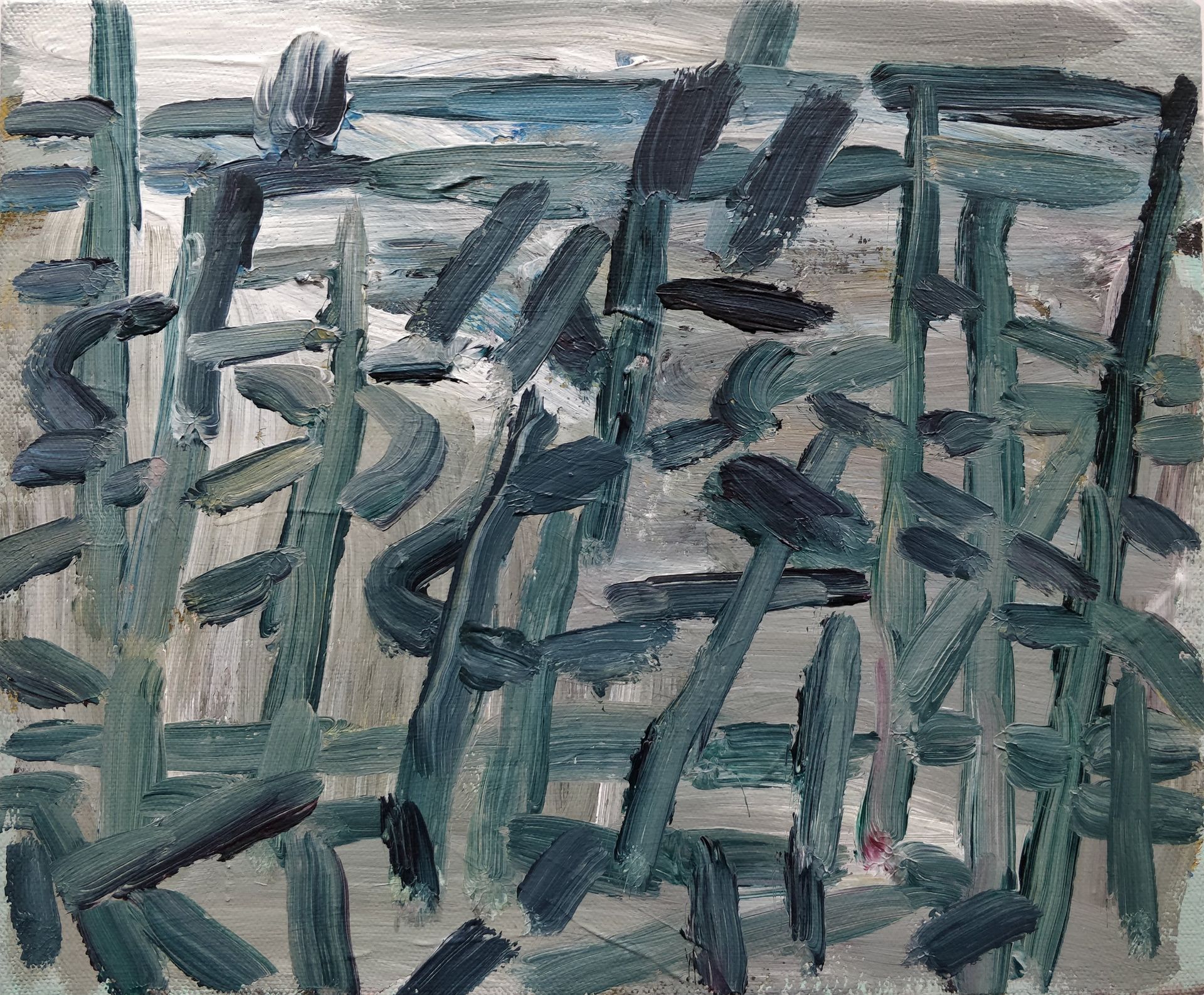 Also seeking to explore the connection between the natural world and its observer. Simon's process consists of walks within the landscape, where initial observations are marked in drawings, taken into the studio and transformed into paintings. He remarks, ‘drawing is a way of connecting to the world, it really makes you look.